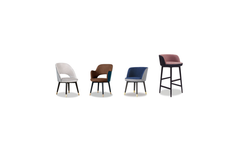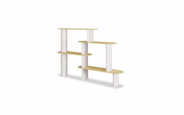 Structure with MDF shaped uprights and cylindrical uprights in curved plywood.