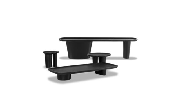 DESIGNER: BAXTER P Frame in solid lime wood. Glossy black shellac finish and matte scratched shelf.
