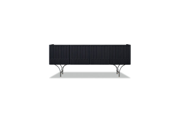 Base in black-stained metal with feet and bars in satin brass.