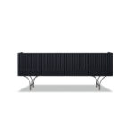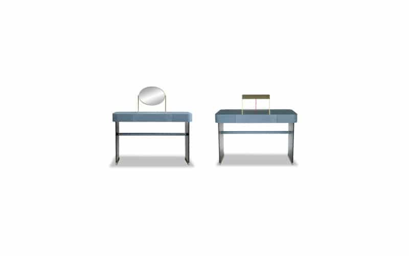 MDF frame with leather upholstery with drawer in veneered India rosewood.
