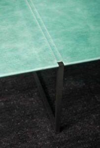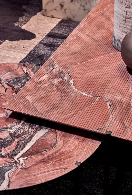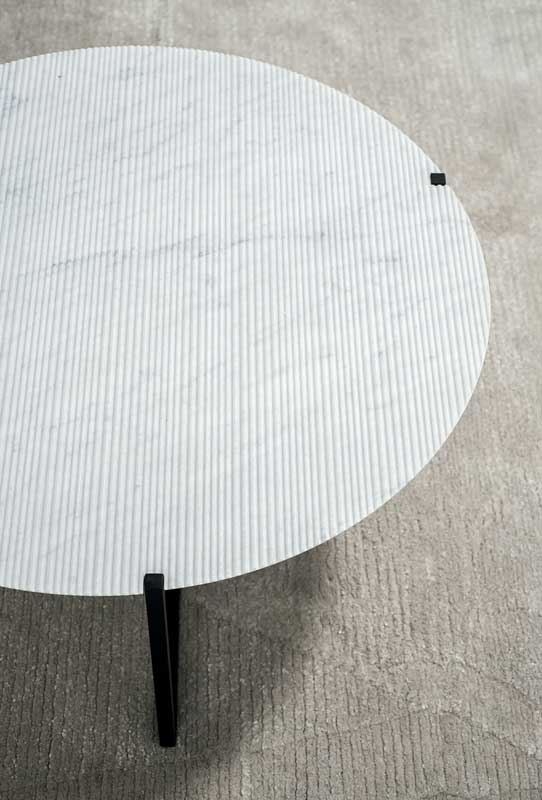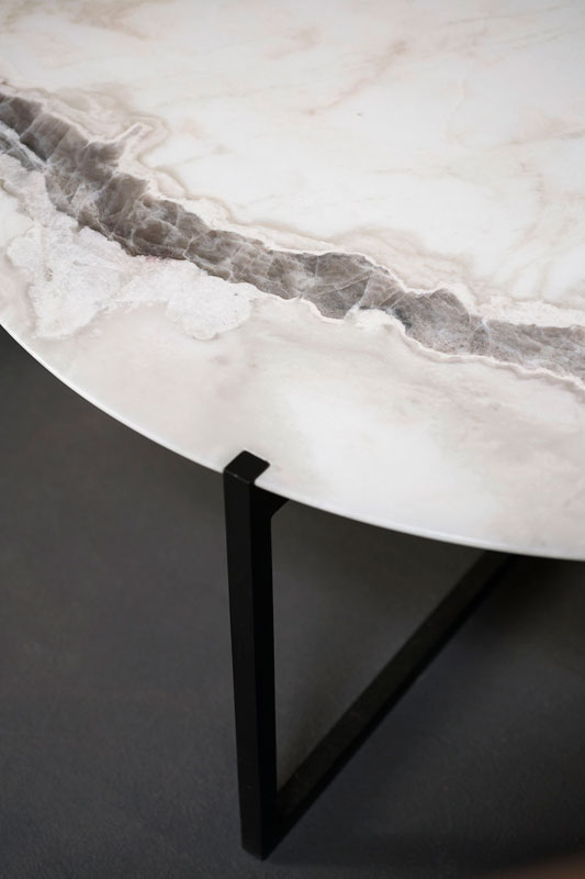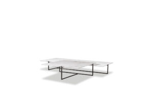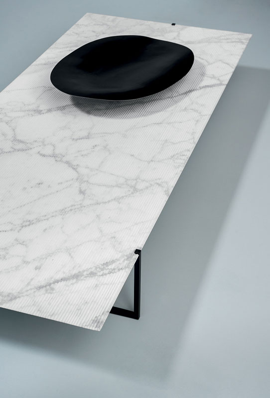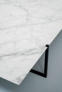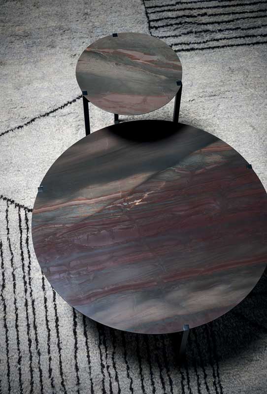 DESIGNER: BAXTER P Base in matte black-varnished metal. MDF top and reinforcing aluminum sheets covered with leather or, by choice, according to size, in stone with water-repellent protective oil.