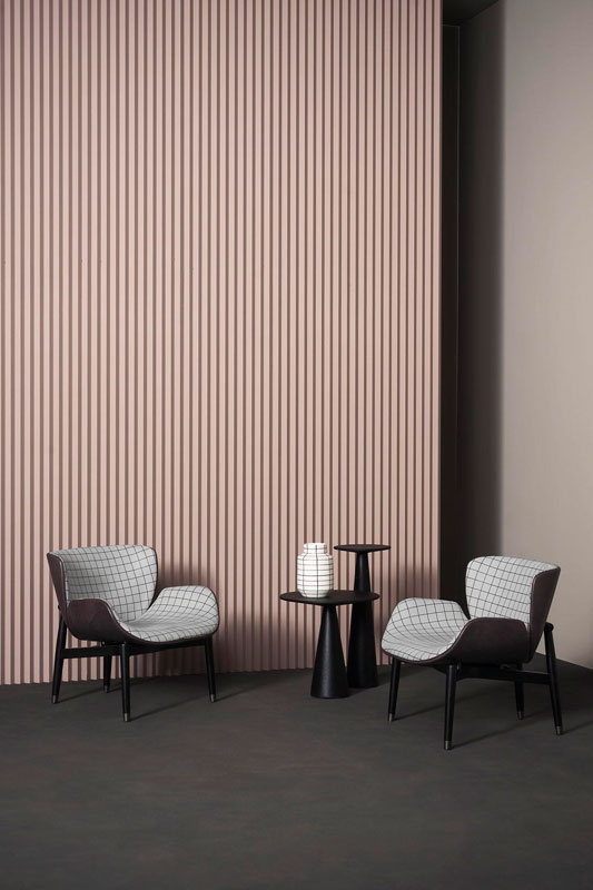 Backrest frame in birch plywood. Differentiated density polyurethane foam filling with acrylic fibre cover.