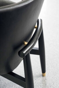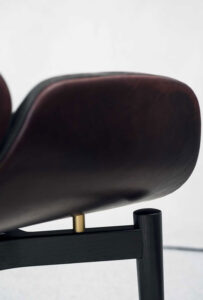 Base in wengé-stained ash. Feet end in satin brass, hand-finished burnished metal or satin nickeled metal, with matte varnish.