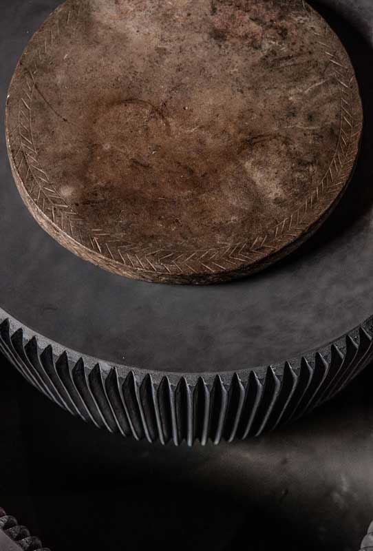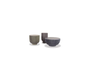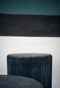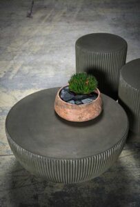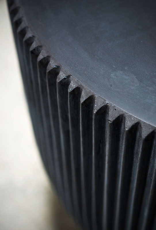 Round structure realized with moulded concrete in order to create vertical pleating on the surface.