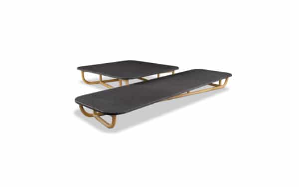 Base made of Manila cane tied with gut parchment. 2 cm thickness top made of lava stone extracted on the slopes of Etna volcano. “Occhio di Pernice” finish, porous and perforated with water-repellent protective oil.