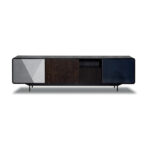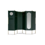 DESIGNER: BAXTER P Mirror with structure in matte black-stained aluminium honeycomb. Satin brass frame, with leather covering on the exterior.
