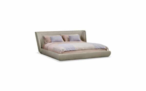 Leather-covered back of the headboard. Bed frame upholstery in removable leather.