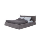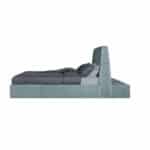 Leather-covered back of the headboard. Bed frame upholstery in removable leather.