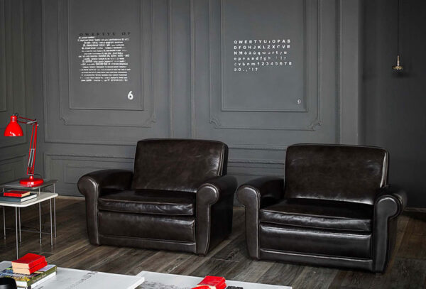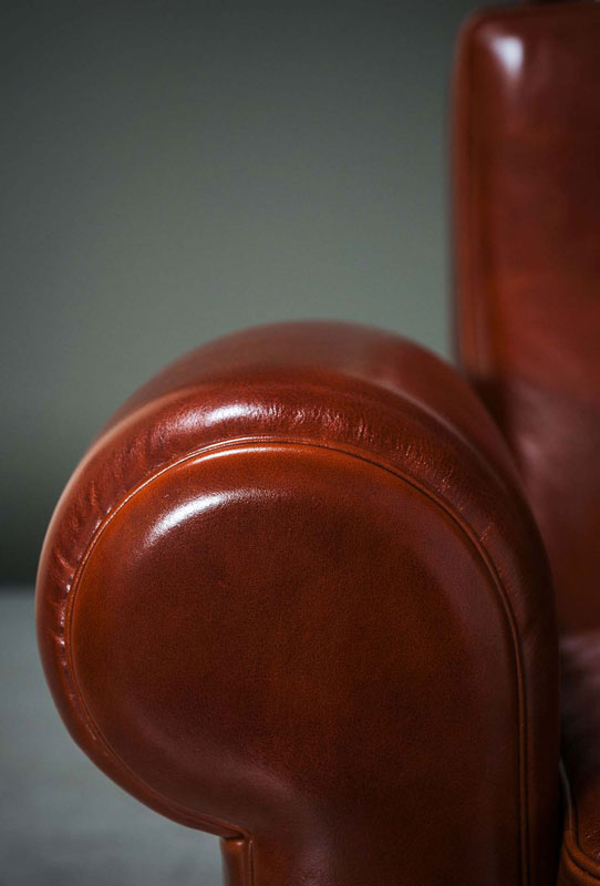Armrest filling in coldfoamed preformed polyurethane. Decorative piping in the same shade of leather.
