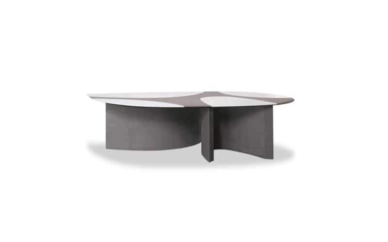 Top in matte Bianco Gioia marble and grey resin with water-repellent protective oil. Aluminium honeycomb support. Leather-covered polimex legs.
