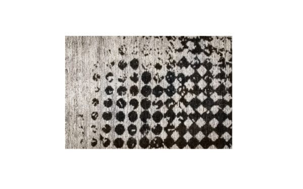 The side borders are carried out with the specific style of an age-old rug and selvedges are woven creating a “vintage” effect.