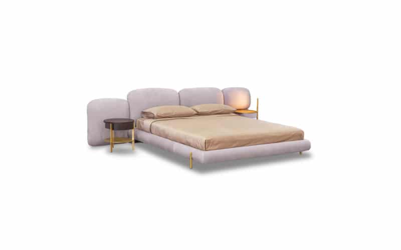 Central headboard modules fixed to the wall and additional side headboard elements (only for modular version) in plywood and honeycomb fir and poplar wood.