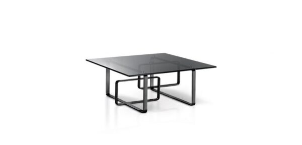 Columbus is a coffee table with essential lines, ready to enhance the spaces of any modern residence. Steel frame with gun-metal grey finishing. Top in smoke grey tempered glass.