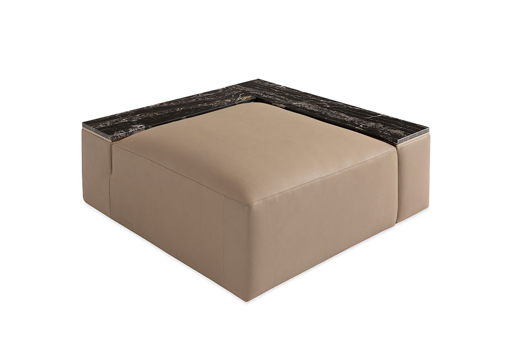 Wooden shutters and maxi drawer with Vermont Lux leather for lacquered or veneered top. Alternative version in lacquered wooden frontal drawer with matt or glossy finishing, only available for coordinated lacquered wood, Stone Fiddleback Sycamore, Charcoal Fiddleback Sycamore, Rosewood or Rosewood Dark with glossy brushed finishing, or American Walnut with matt finishing.