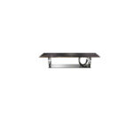 A reinterpretation of an iconic pattern of the FENDI tradition, the Morris table is a tribute to the Astuccio motif: the wooden top, also available in the new Antique Rosewood matte rosewood finish, houses elegant galvanized metal grafts that ideally divide it into three parts. The legs are in steel and wood, with coordinated finishes for the top and the lasered FENDI logo.