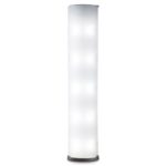 Floor lamp with indirect light and dimmable by switch button. Painted metal frame. Black power cable, dimmer and plug. Plug-in power supply with interchangeable plugs (UK – USA – UE – AUS). Integrated led.
