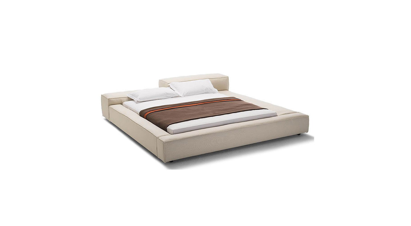 The mattress area is surrounded by a perimeter of soft, regular volumes embellished with stitchings, which become asymmetrical in the headboard, granting a desire to relax, showing at the same time energy and personality.