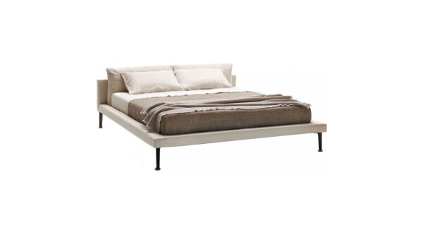 It is distinguished by the detail of the large and soft cushions laying on the lowered headboard, creating a pleasant play of heights, joints and textures, in the sign of three-dimensionality and pureness of lines.