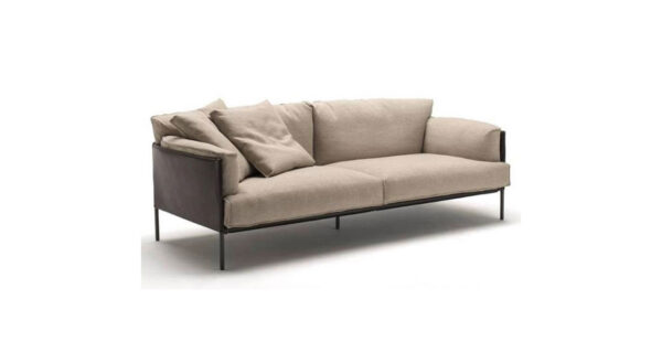 Greene is a sofa in fixed measures and defined by gentle curves for a relaxed and casual proposal: a structured yet soft perimeter welcomes ample cushions while standing on slender feet, restating once again the attention toward every small detail.