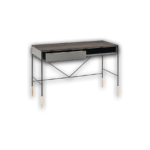 Indoor version: top and bottom in 19 mm thick, contoured and bevelled MDF, with the bottom part always lacquered with epoxy powder coating matt black, and top available veneered charcoal dyed oak or Stone Oak®, with bevelled edge always lacquered with epoxy powder coating matt black; all lacquered matt black; in red Levanto or Sahara Noir marble (thickness 15 mm), fixed to the MDF top through screws, with a satin finish and an opaque transparent protective varnish