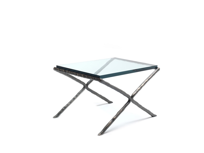 Little Nero designed by Matthias Hickl for Living Divani is a rectangular low table with base in brass casting, bronze finishing. Clear tempered glass top of 22mm thickness. The black crystal top gives to this low table both elegance and determination.