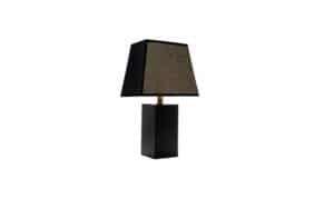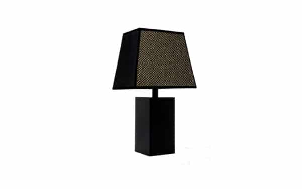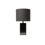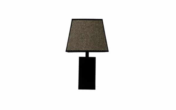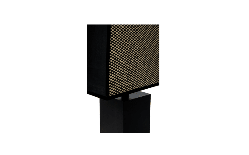 The lampshade is made of two fabrics; the ones at the front combine linen in two colors and the ones on the sides are velvet.
