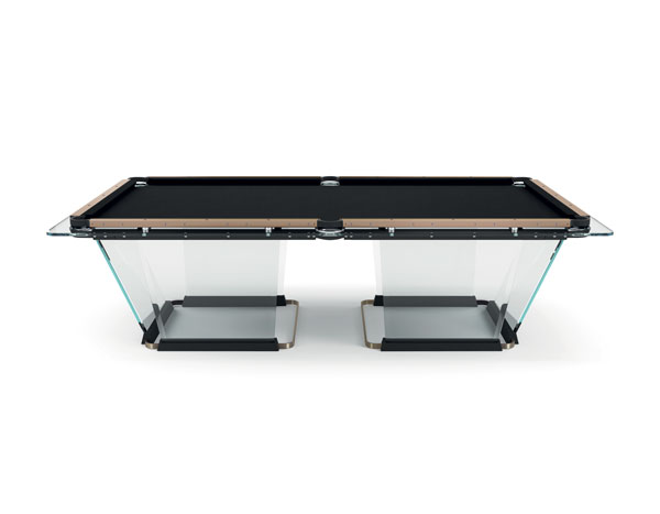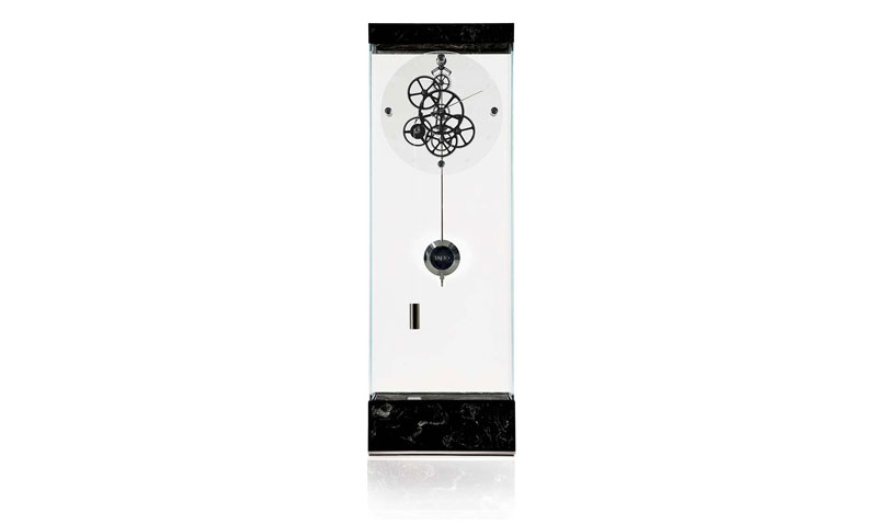 Shell perimeter in 9/16”-thick crystal. The vertical plates are tempered glass; the curved ends have undergone a hot bending process. Every component is polished with cerium oxide.