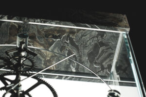 Base and top of Marquina black, brushed silver wave gray, or polished Covelano white.