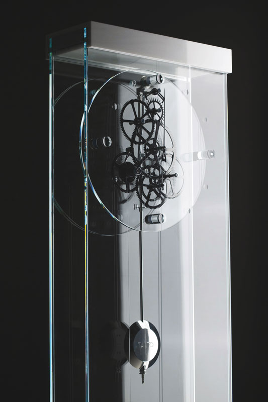 Pendulum rod made of Invar, a metal alloy with a very low thermal expansion coefficient, with compensation tube for temperature variation.
