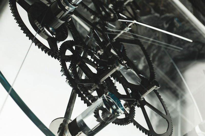 Stainless steel arbor, revolution on 15 ball bearings