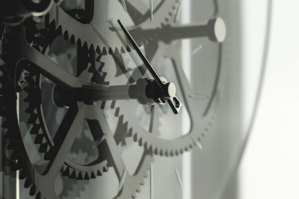 Pendulum rod made of Invar, a metal alloy with a very low thermal expansion coefficient, with compensation tube for temperature variation.