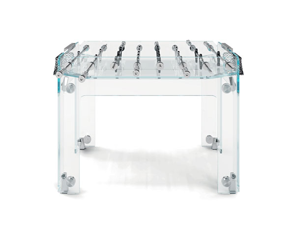 Playing field in laminated crystal. Molded sheet that slopes at the corners. Available in transparent or smoked glass.