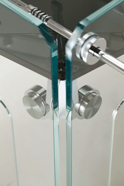 Tempered clear crystal structure, 9/16” thick, with beveled and cerium oxide-polished corners.