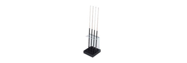 Clear crystal structure at least 9/16 ” thick that holds seven cue sticks.