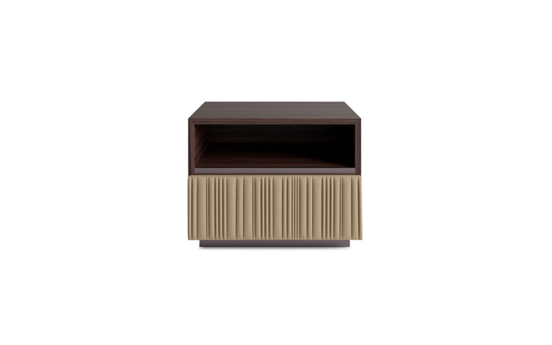 Carlo Colombo reinterprets the working technique applied to the bag in the vertical quilting in leather, playfully alternating between full and empty spaces, open compartments, drawers and doors with varying storage functions.